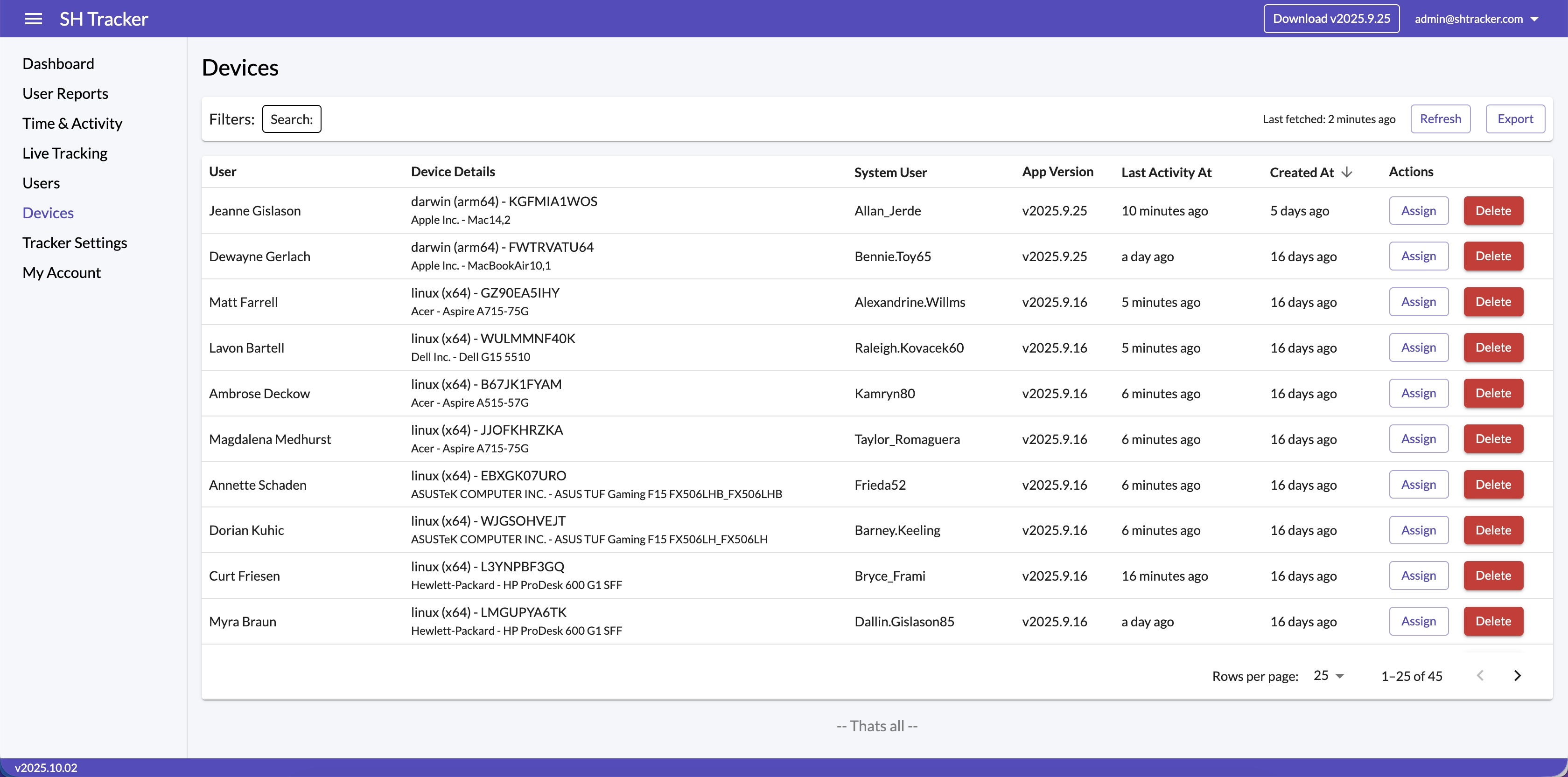 Keep an updated device registry with OS, specs, user, and last activity, and manage access by reassigning or removing devices.